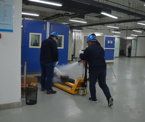 为了进一步加强汽车检测中心安全管理工作,充分做好安全风险防范预警,提高全体职工消防应急处置能力,确保职工人身安全和财产安全。3月25日下午,汽车检测中心组织开展了电池包实验过程起火处置演习。