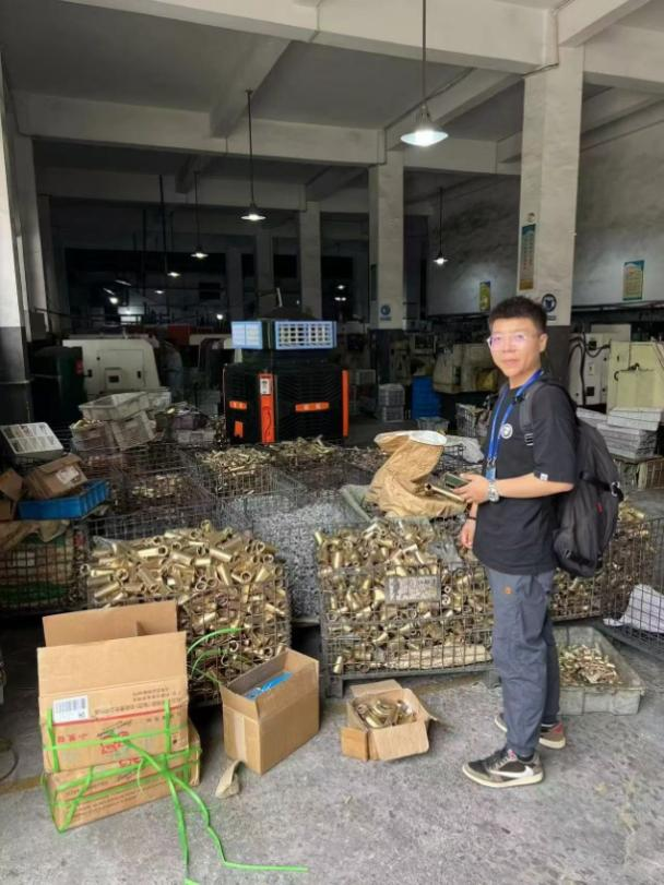 右图:6月27日,杨高鹏在执行市抽卫浴水嘴抽样工作